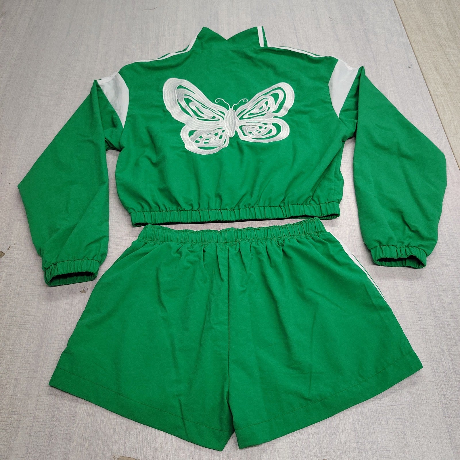 Embroidered StrtBtrfly logo on jacket + shorts