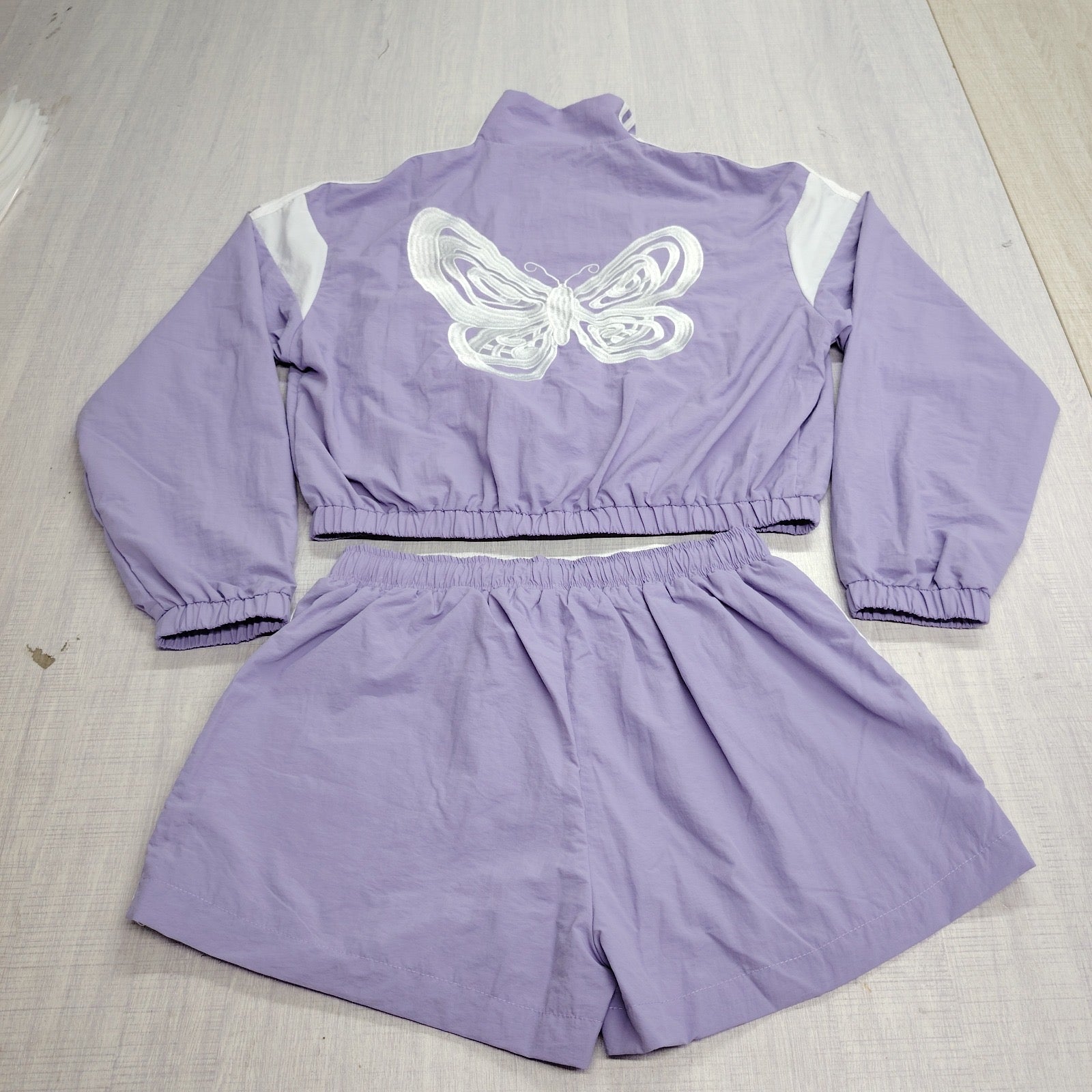 Stand out in the StrtBtrfly Women’s Purple Tracksuit Set. Designed for comfort and style, this two-piece includes a cropped zip-up jacket and matching drawstring shorts in a bold pink with white detailing. The lightweight fabric keeps it breathable while the elastic waistband and cuffs give a relaxed fit. Finished with the signature StrtBtrfly butterfly logo on both pieces, this set blends sporty energy with streetwear edge.